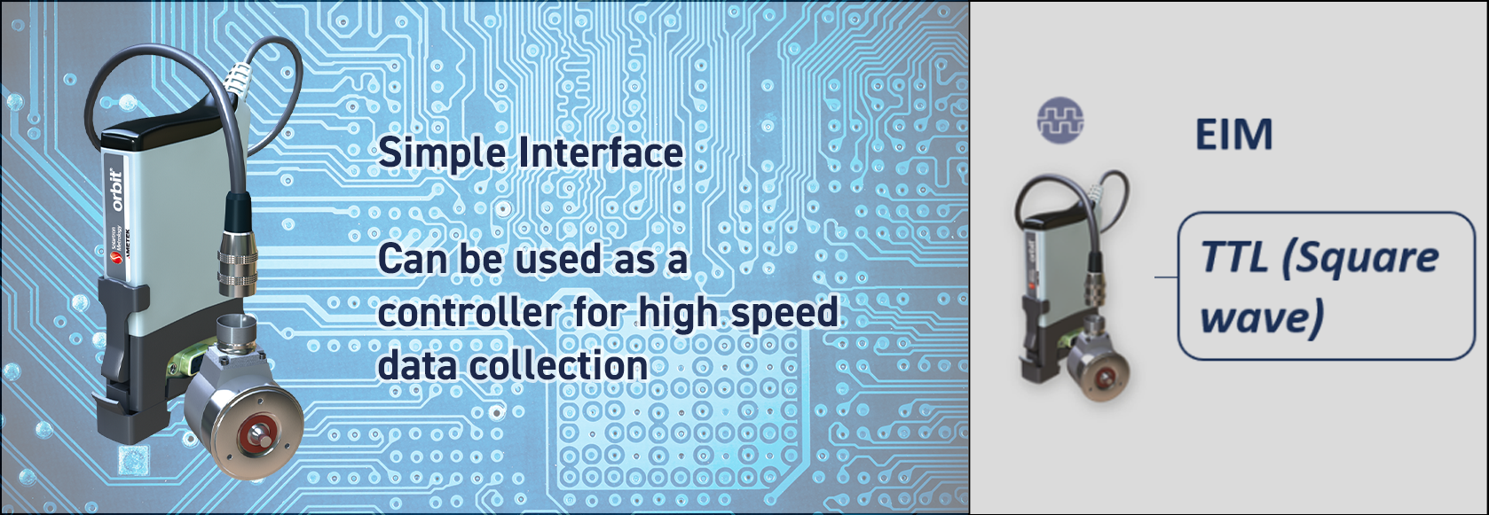 EIM(Encoder Input Module、エンコーダ入力モジュール)では、インクリメンタルロータリーエンコーダまたはリニアエンコーダにシンプルなインターフェースを提供します。これは、カムシャフトなどの部品の測定機を製作する際に特に便利で、表面形状の測定を簡単に実施できます。また、EIMは、部品回転時に測定値を同期する必要がある高速データ収集用のコントローラとして使用することもできます。